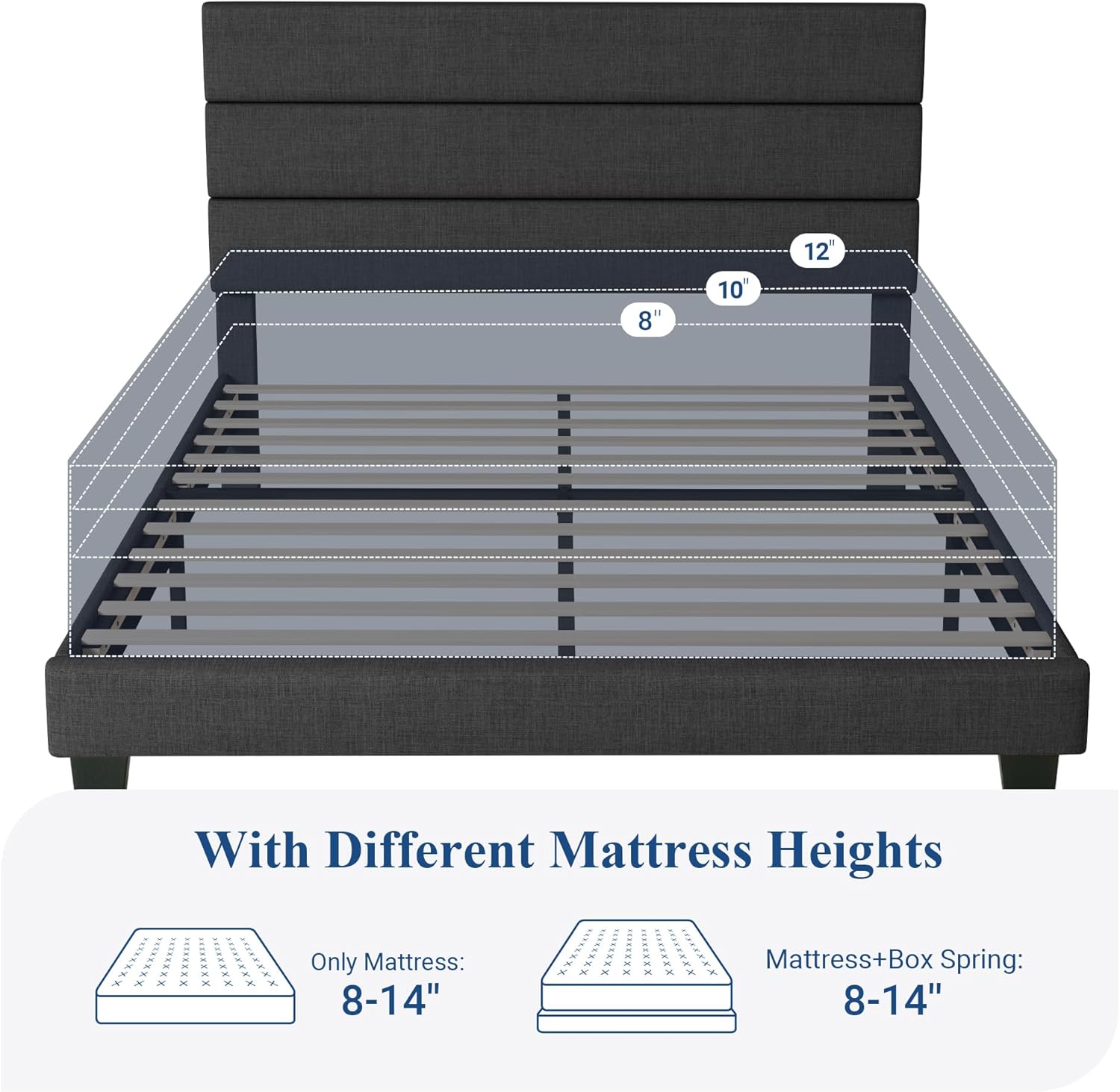 - Minimalist & Noise-Free: Bed frame queen size with a padded upholstered headboard, suitable for various decors; EVA mute bar prevents noise from friction, no squeaking or creaking
